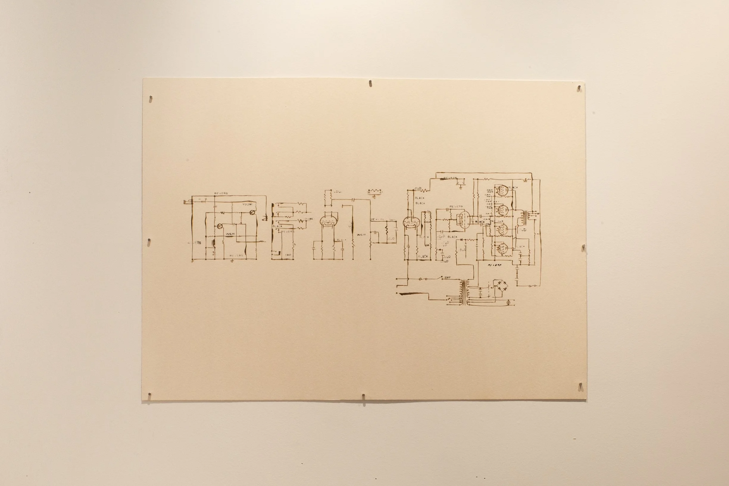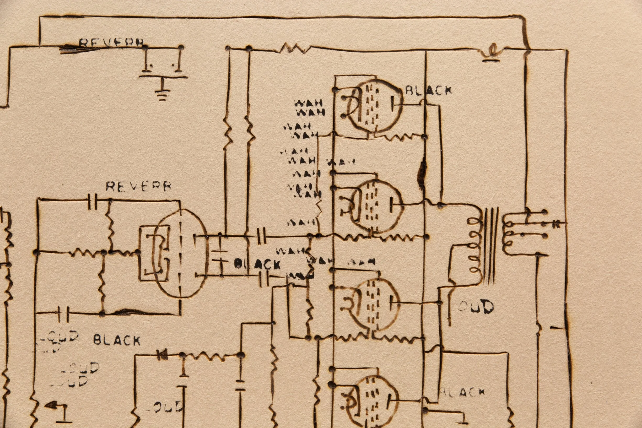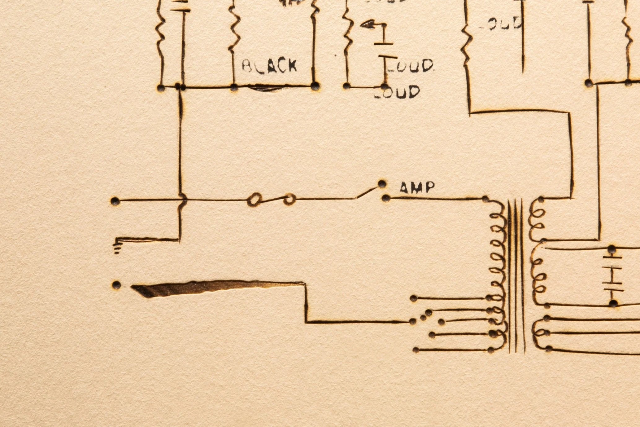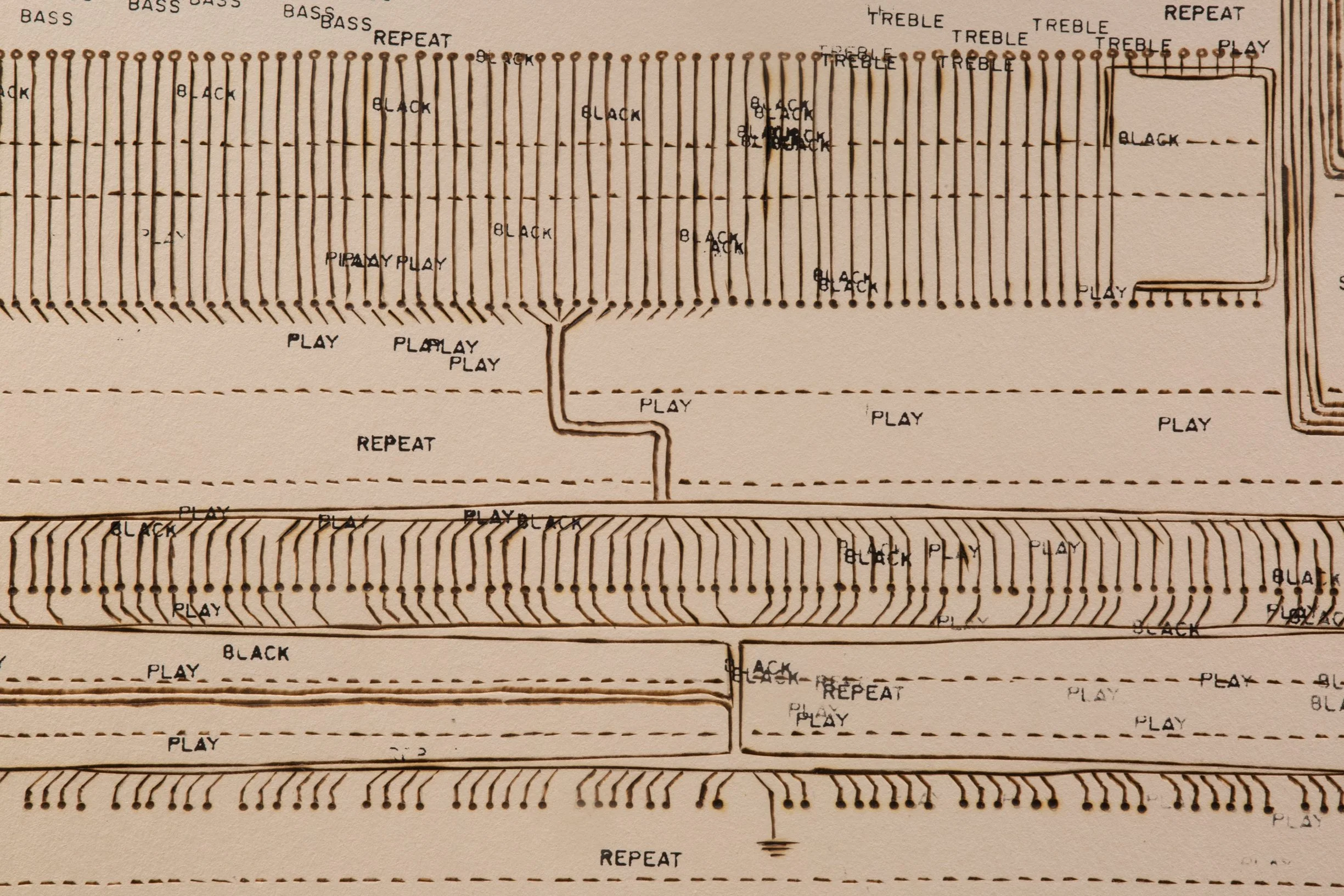 Jimmy Smith’s Hammond B-3 organ | 37.5” x 29.5” - ink, taskboard, graphite, soldering iron heat